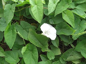 Die Blätter sind pfeilförmig. Die Blüten sind trichterförmig und weiss, rosa oder zartblau. Sie sind cirka zwei Zentimeter im Durchmesser.