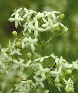 Inhaltsstoffe: wenig ätherisches Öl, viel Kieselsäure, Gerbstoffe, organische Säuren, Flavonoide Heilkräftige Pflanzenteile: Kraut Sammelzeit: Juni/Juli Heilwirkung: Die Volksheilkunde verwendet das Labkraut bei Hysterie, Nervenleiden, Epilepsie, Veitstanz, Urinverhaltung, Grieß und Steinbeschwerden. Anwendung: Labkrauttee reinigt Niere, Leber, Bauchspeicheldrüse und Milz von Krankheitsstoffen. Wer an Störungen des Lympfdrüsensystems leidet, sollte diesen Tee täglich trinken. Dieser Tee hilft äusserlich gegen Hautkrankheiten, Wunden, Furunkel und Mitesser. Ausserdem strafft er schlaffe Gesichtshaut. |