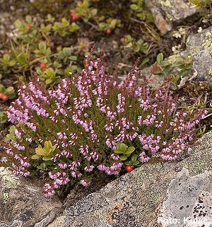 | Familie: Heidekrautgewächse (Ericaceae) Volksnamen: Besenkraut, Brandheide, Erika, Immerschön, Zetten Beschreibung: Besenheide ist ein und immergrüner Zwergstrauch. Die Besenheide blüht vom Spätsommer bis Herbst weiß und rosa bis purpurn. Die nickenden Blüten stehen in einem dichten, traubigen Blütenstand. Die Besenheide gilt als Säurezeiger. Sonstiges: Den Namen „Heidekraut“ tragen auch Pflanzen der Gattung Erica die zur selben Familie (Heidekrautgewächse)gehört. Sie ist die namensgebende Pflanzenart der Heidelandschaft. |