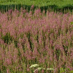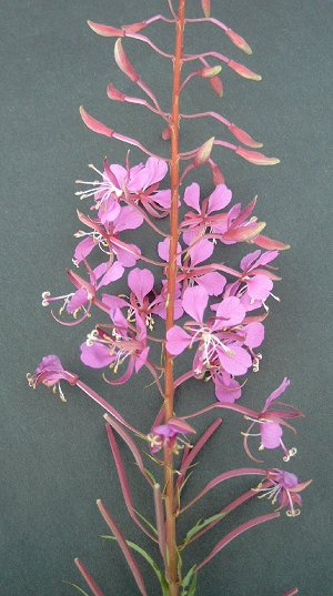Familie: Nachtkerzengewächse (Onagraceae) Volksnamen: Froweblüemli, Otterkraut Beschreibung: Das Schmalblättrige Weidenröschen, mit einer Wuchshöhe von 50 bis 120 Zentimetern, ist eine ausdauernde krautige Pflanze. Sie bildet ein weit kriechendes Rhizom als Überdauerungsorgan. Die aufrechten, im Querschnitt runden bis stumpfkantigen und meist unverzweigten Stängel, sind kahl oder nur schwach behaart. Die wechselständigen, schmal lanzettlichen Laubblätter sind kurz gestielt. Die zahlreichen Blüten sind in einem langen, endständigen, traubigen Blütenstand mit rosa- bis purpurfarbenen Blüten, angeordnet. Diese sind etwa 2 bis 3 Zentimeter breit. Geschichte: In Europa wurde das Weidenröschen früher gegen Blitzschlag verwendet. Es gehörte auch zu den Bettstrohkräutern, die Wöchnerinnen nach der Geburt in die Matratze gestopft wurden, um das Befinden von Mutter und Kind zu verbessern. Sonstiges: Honig von Weidenröschen-Blüten soll besonders aromatisch sein. |
